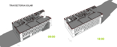 El análisis de trayectoria solar utiliza la latitud donde se encuentra el edificio para arrojar la proyección de sombras exacta del lugar. La ventaja es que por ser un análisis netamente visual, permite comprender de manera instantánea como incidirá la radiación solar sobre el proyecto en los distintos días del año, dando la posibilidad de identificar espacios cuyo soleamiento es deficiente o excesivo. Este análisis sirve además para el diseño efectivo de protecciones solares.